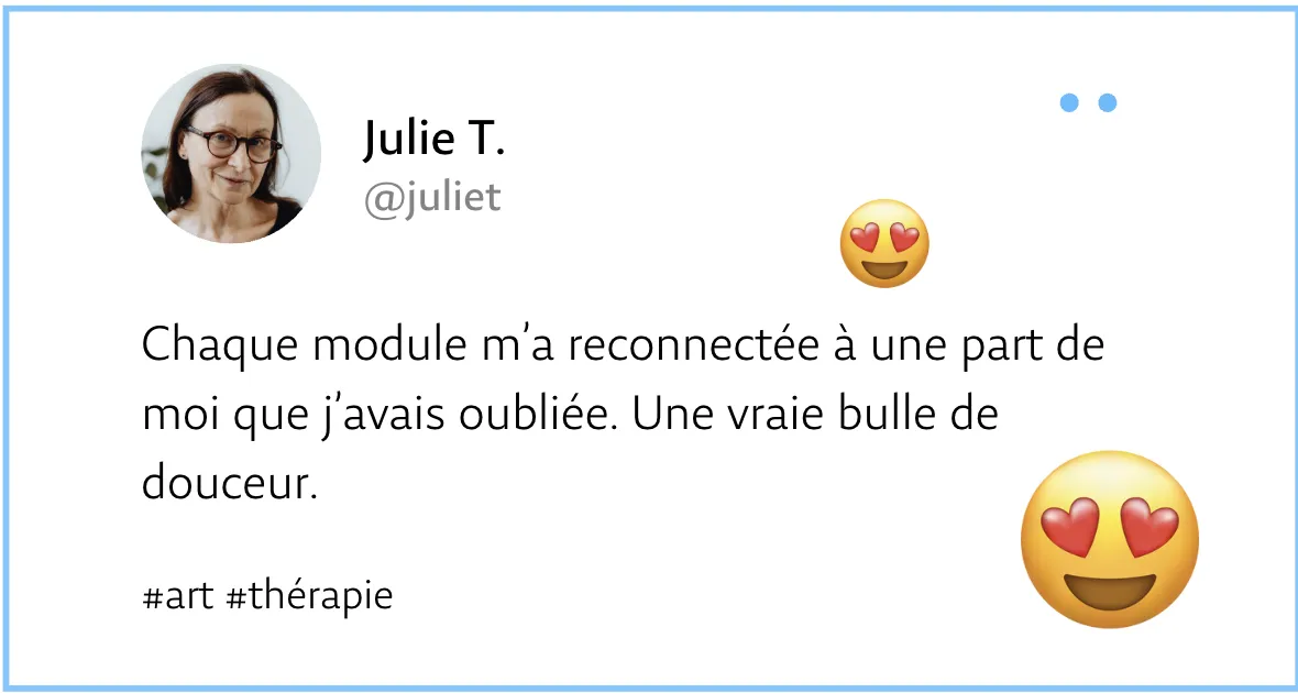 Ce programme est une formation créative et introspective, destinée à une pratique personnelle de peinture. Elle ne remplace pas un suivi thérapeutique professionnel.