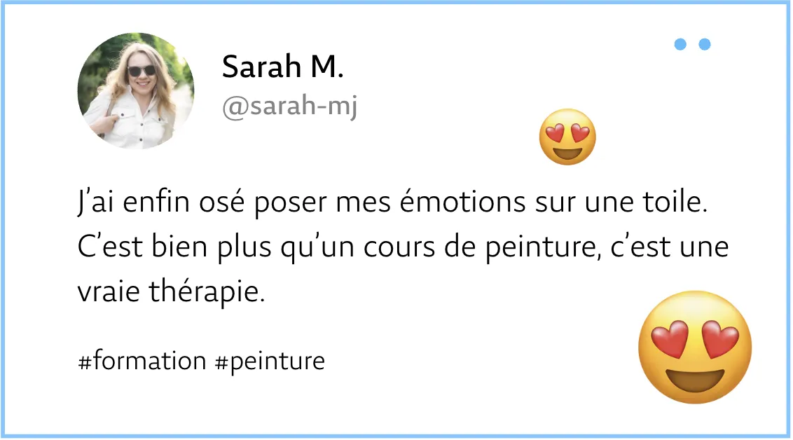 Voici ta chance d’apprendre à peindre librement, te libérer du stress, retrouver confiance… et tout ça, sans pression de résultat.